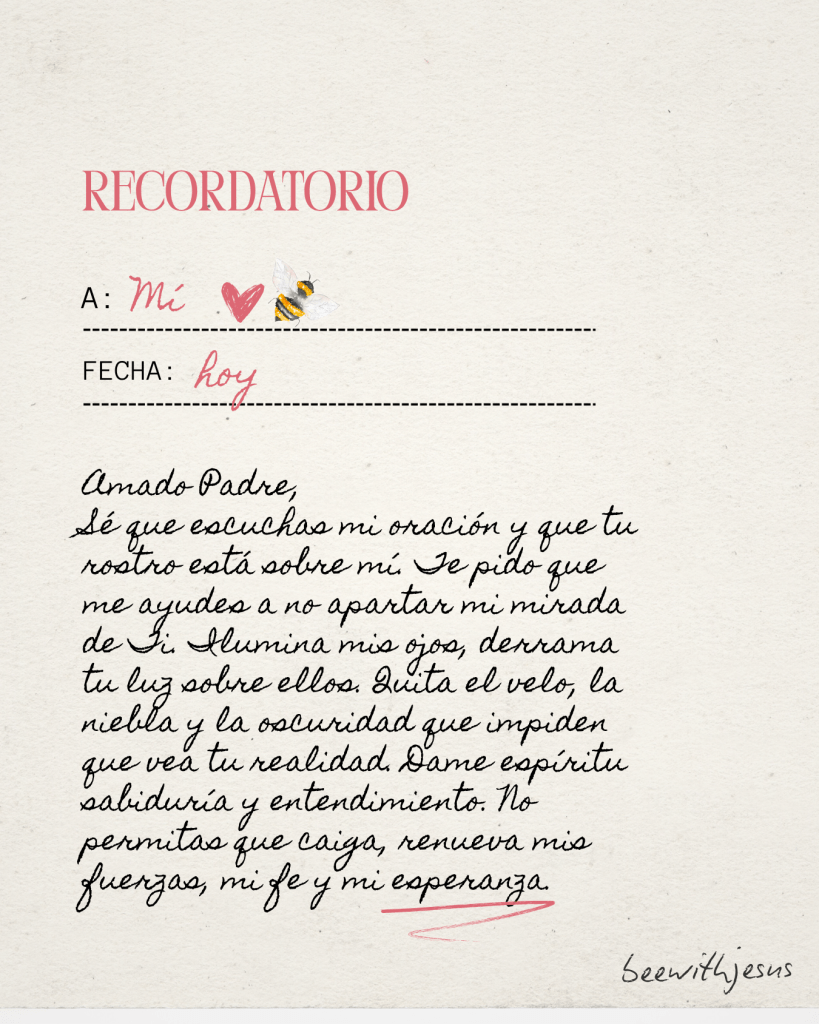 Debemos seguir el ejemplo de David, en el Salmo 13, y cambiar nuestro enfoque, así como él pidió que Dios iluminara sus ojos, nosotros también. David tuvo la sabiduría de reconocer que no estaba viendo la realidad a través de los filtros del miedo. Su visión estaba nublada y oscurecida.
