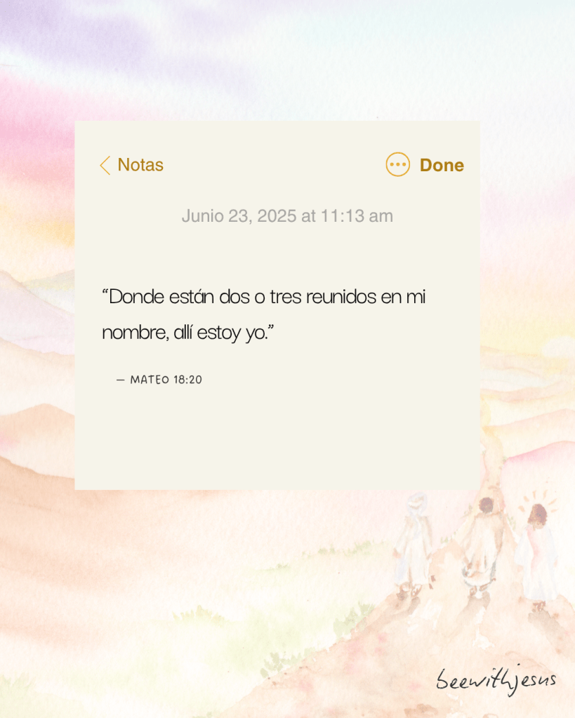 “Porque donde dos o tres se reúnen en mi nombre, allí estoy yo en medio de ellos.” Mateo 18:20